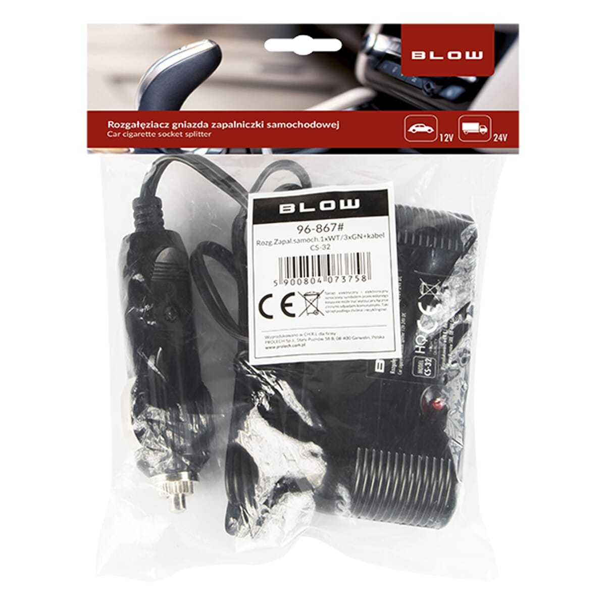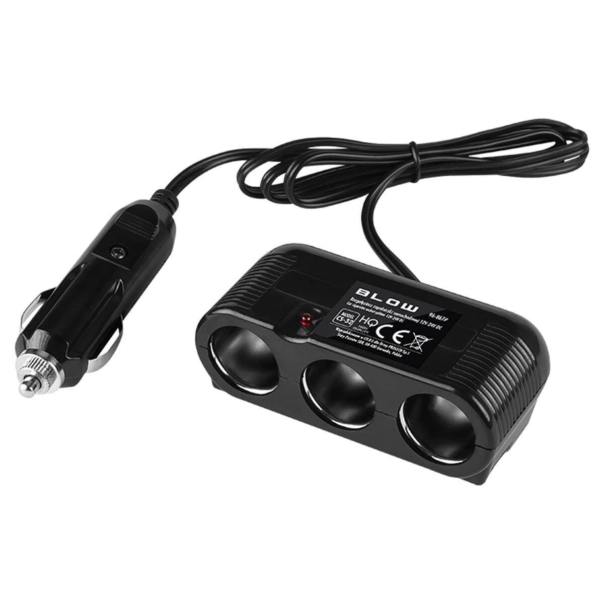 BLOW Auto Sigarettenaansteker Splitter – 3x Socket – CS-32 – 12V/24V – Met Kabel & LED-indicator