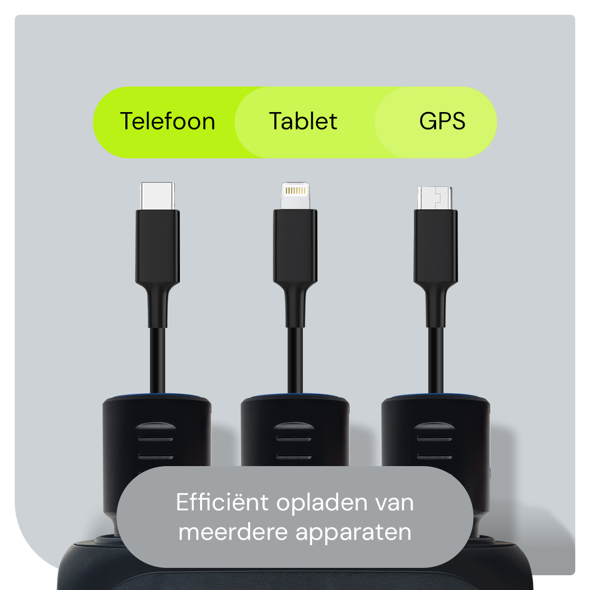 - Gemak: Geen gedoe met meerdere opladers, alles wat je nodig hebt in één handige splitter.