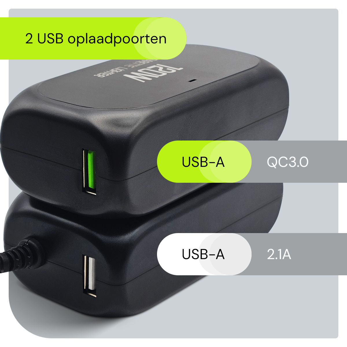 - Twee USB-poorten voor het opladen van smartphones, tablets, en andere USB-apparaten.