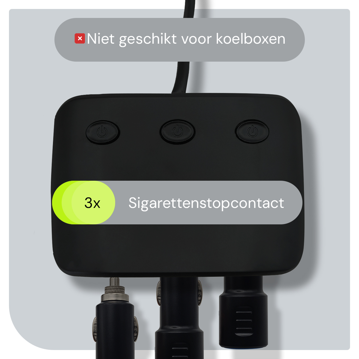 Let op: deze sigaretten splitter is geschikt voor mobiele apparaten met een voortdurend laag wattage gebruik. Helaas vallen koelboxen hier niet onder, waardoor deze niet geschikt is voor deze splitter. Wel zijn bijvoorbeeld het opladen van telefoons, GPS, laptops en andere mobiele apparaten hiervoor uitermate geschikt.
