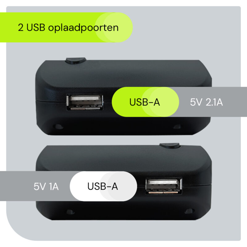- 2x USB-poorten voor het opladen van smartphones, tablets, GPS-apparaten en meer.