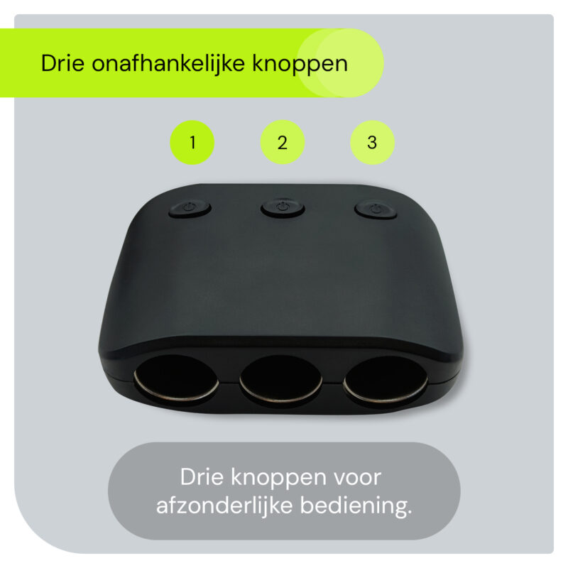 De ProRide® Auto Sigarettenaansteker Splitter met 3 Schakelaars biedt de perfecte oplossing voor het efficiënt en veilig opladen van al je elektronische apparaten tijdens het rijden. Met zijn veelzijdige ontwerp en individuele schakelaars is deze splitter een handig en betrouwbaar accessoire voor elke auto, boot of camper.