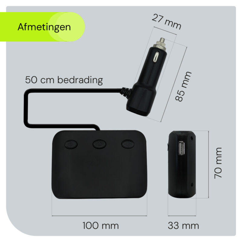 - Compact ontwerp: Past gemakkelijk in de sigarettenaansteker van je voertuig zonder onnodige ruimte in beslag te nemen.