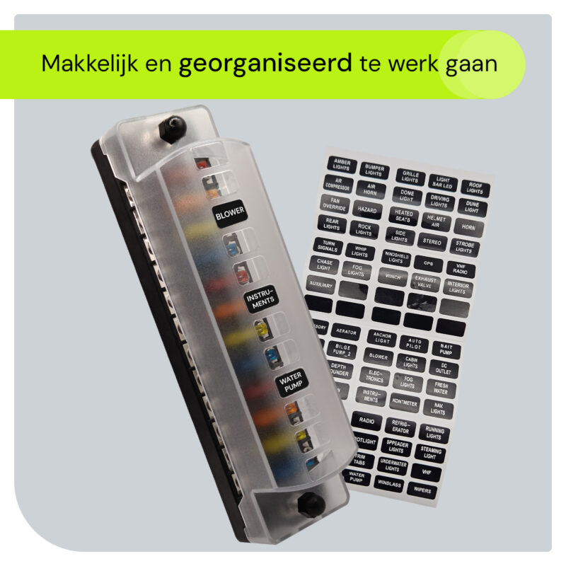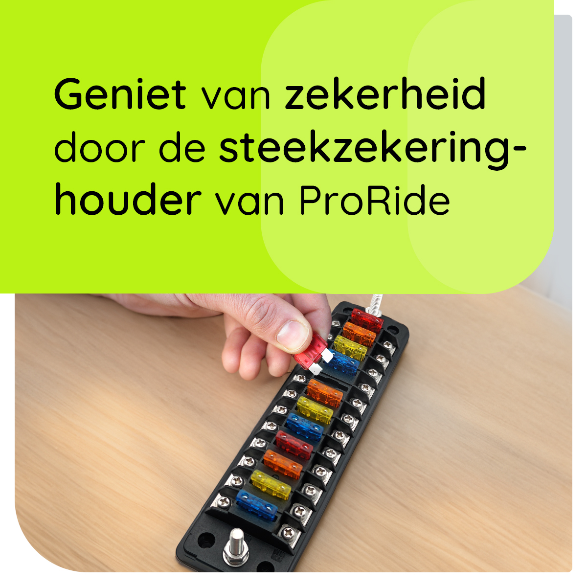 Of je nu een doe-het-zelver bent die zijn eigen elektrische systemen wil bouwen of een professional die betrouwbare bescherming nodig heeft voor voertuigen, de ProRide® Steekzekeringhouder 12-polig is de ideale keuze. Met zijn robuuste ontwerp en eenvoudige installatie, biedt deze zekeringhouder gemoedsrust en bescherming voor al je elektrische systemen.
