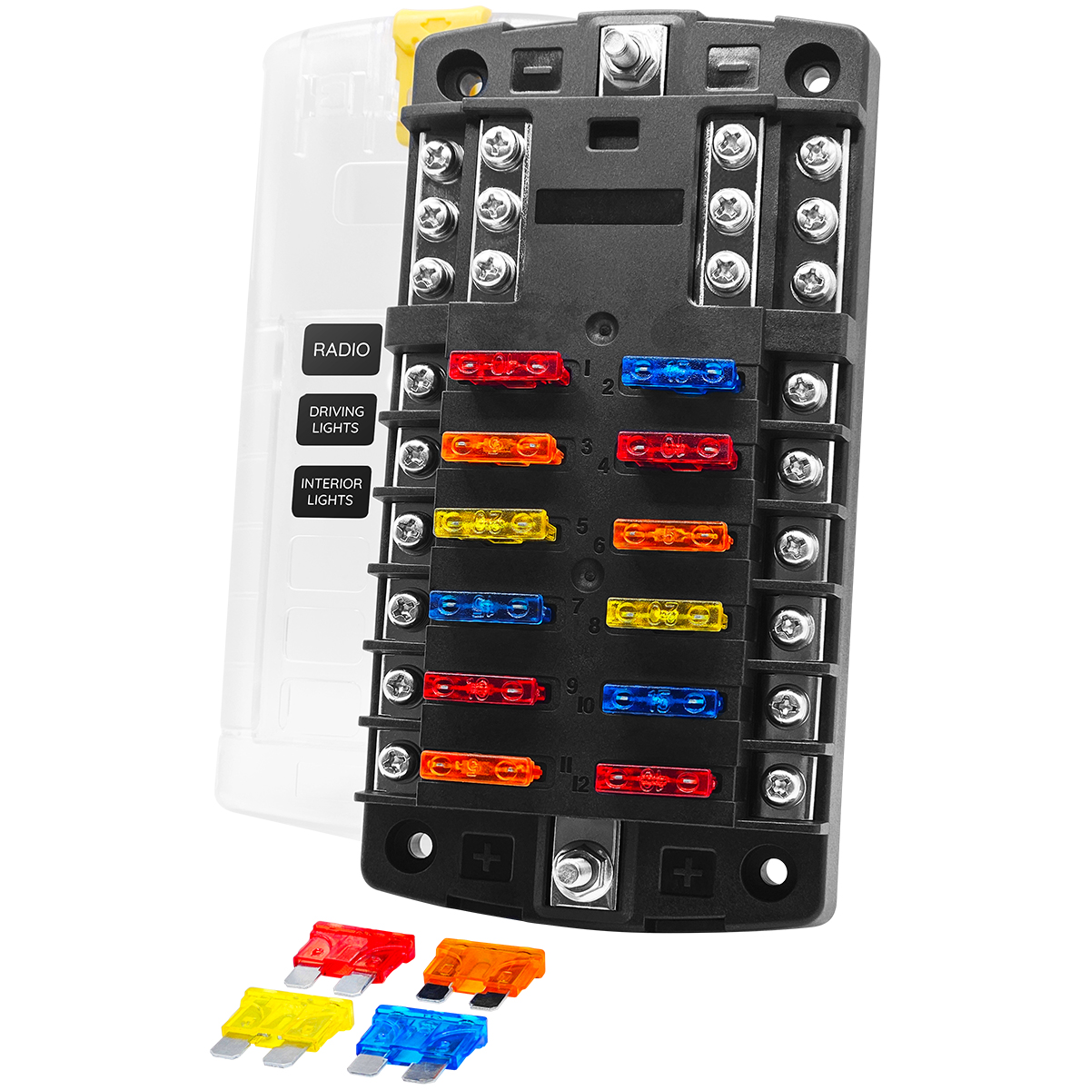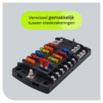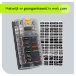 - 12-voudig ontwerp: Met 12 individuele zekeringposities biedt deze houder voldoende ruimte voor al je elektrische accessoires en toepassingen.