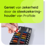 Of je nu een avontuurlijke reiziger bent, een fervent watersporter of gewoon iemand die waarde hecht aan een goed georganiseerd voertuig, de ProRide® Steekzekeringhouder 12-voudig biedt de ideale oplossing voor al je elektrische behoeften. Met zijn robuuste constructie, ruime ontwerp en veelzijdige toepassingsmogelijkheden, kun je vertrouwen op deze houder voor een betrouwbare stroomvoorziening, waar je ook gaat.