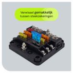 - 6-voudige zekeringhouder: Voorzien van zes afzonderlijke houders, waardoor je meerdere elektrische circuits kunt beveiligen.