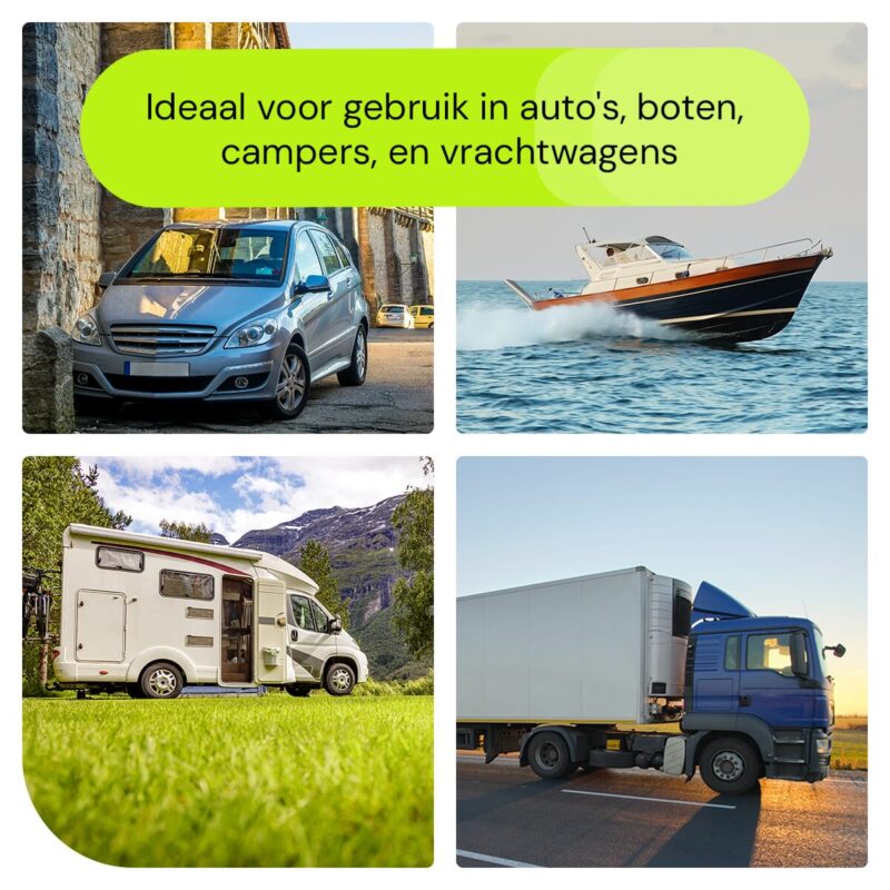 - Spatwaterdicht: Ideaal voor gebruik in vochtige omgevingen zoals boten en voertuigen, dankzij de spatwaterdichte behuizing.