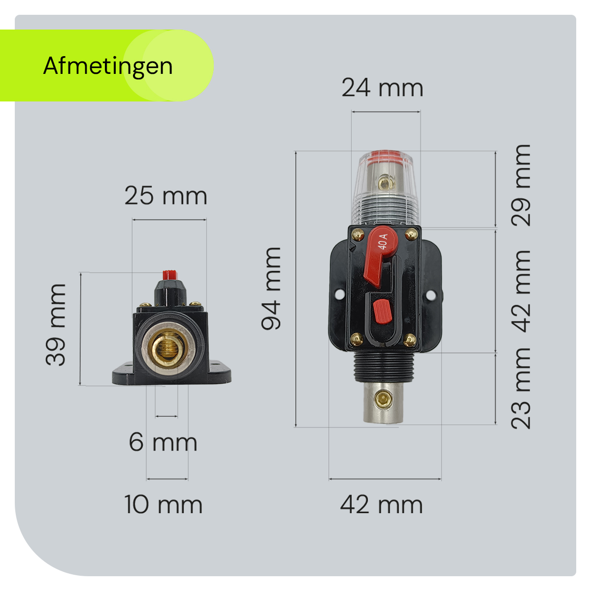 - Stroomsterkte: 40A