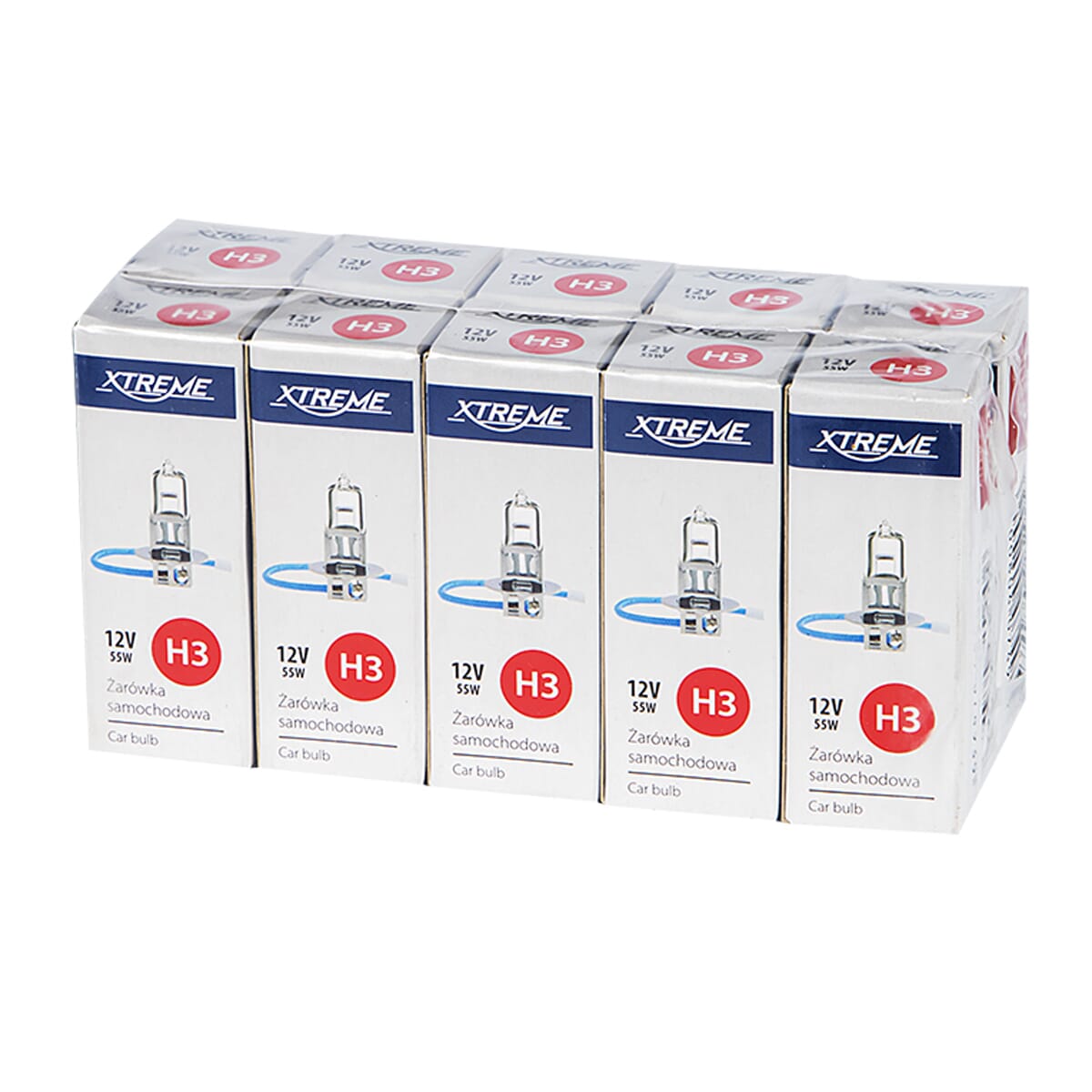 De EXTREME Halogeenlamp H3 is een krachtige verlichtingsoplossing ontworpen voor gebruik in auto mistlampen en werklampen. Met een spanning van 12V en een vermogen van 55W biedt deze lamp heldere en consistente verlichting, ideaal voor situaties waarin extra zichtbaarheid vereist is. Deze set bevat 10 stuks, waardoor het een praktische keuze is voor zowel individuele gebruikers als professionele monteurs.