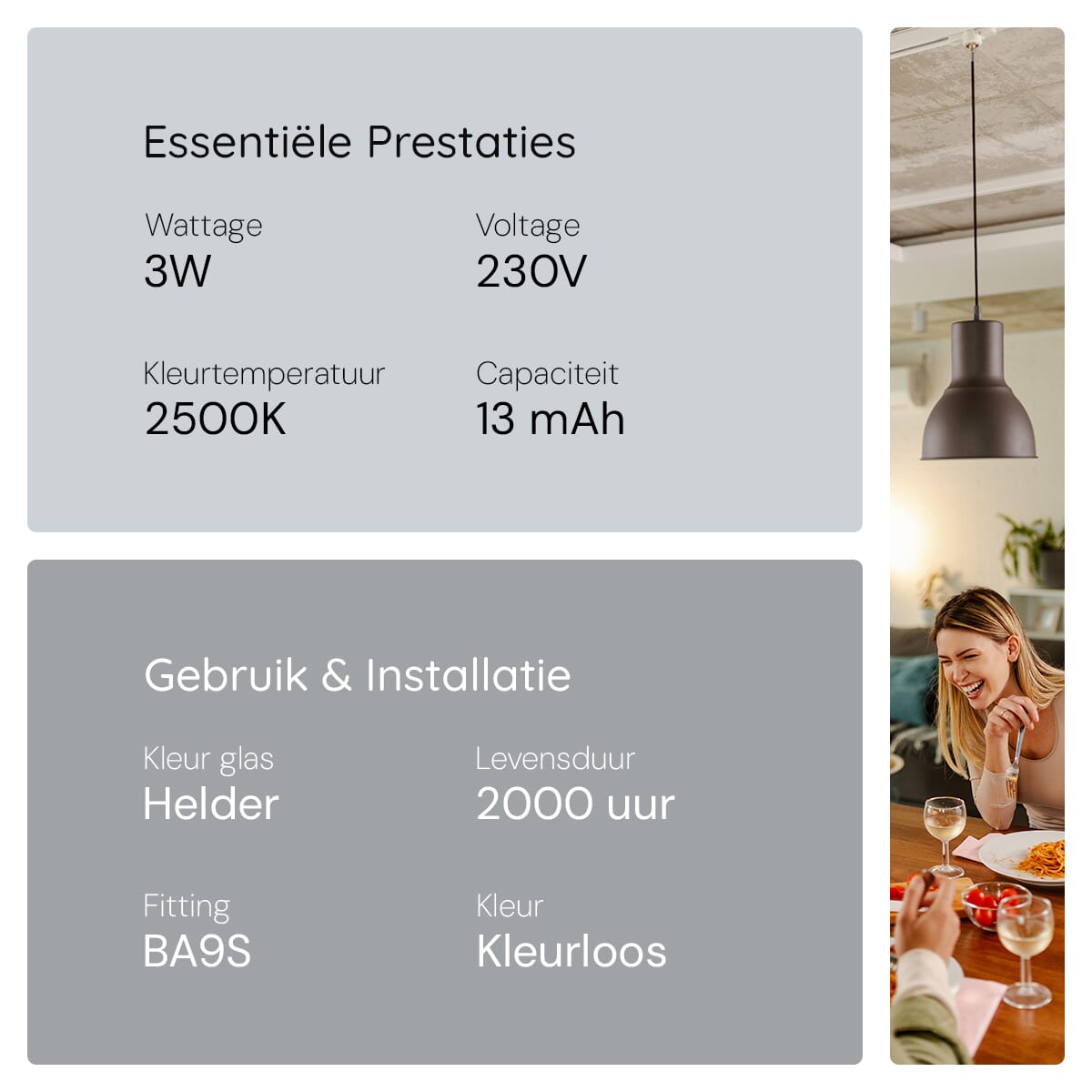 - Kleurtemperatuur: 2500K