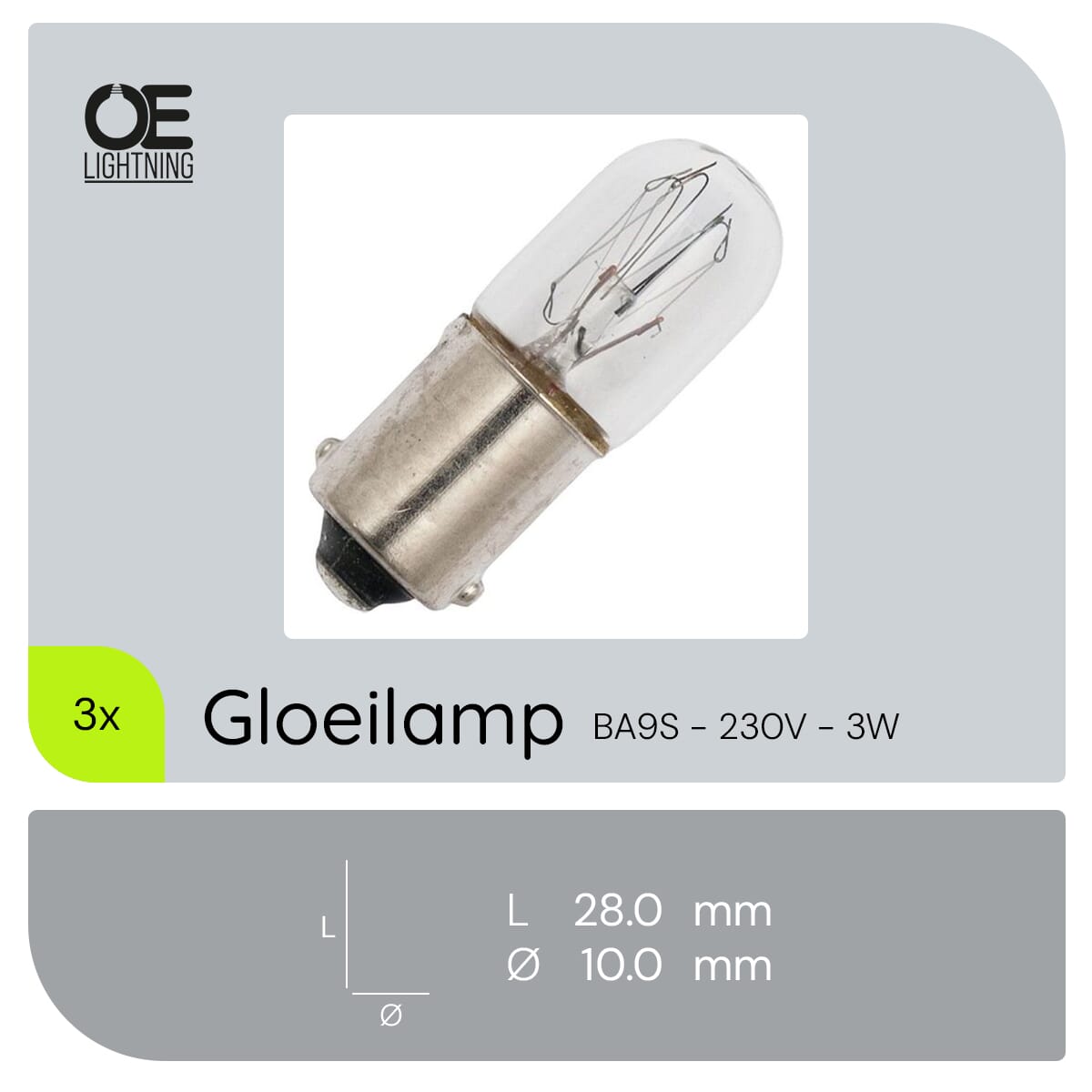 De miniatuur signaallamp BA9S is een compacte lichtbron die geschikt is voor diverse toepassingen zoals apparatuur, instrumentpanelen en indicatorlampjes. Met een vermogen van 3W en een spanning van 230V biedt deze lamp een betrouwbare en efficiënte verlichting. De lamp heeft een diameter van 10mm en een lengte van 28mm, waardoor hij gemakkelijk in kleine ruimtes past.
