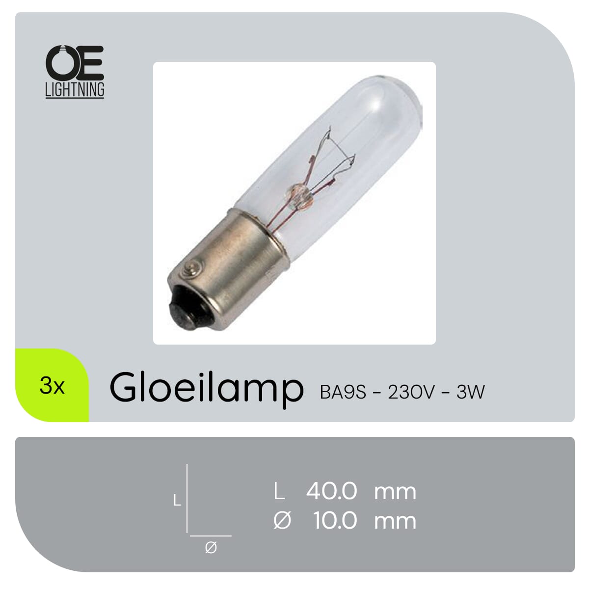 De miniatuur signaallamp BA9S is een compacte lichtbron die geschikt is voor diverse toepassingen zoals apparatuur, instrumentpanelen en indicatorlampjes. Met een vermogen van 3W en een spanning van 230V biedt deze lamp een betrouwbare en efficiënte verlichting. De lamp heeft een diameter van 10mm en een lengte van 40mm, waardoor hij gemakkelijk in kleine ruimtes kan worden geïnstalleerd.
