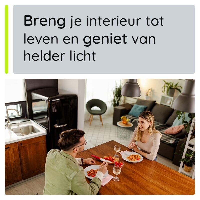 Met de dimbare functie van deze lamp kunt u de lichtintensiteit eenvoudig aanpassen aan uw specifieke behoeften. Dit maakt het product geschikt voor situaties waarin variabele verlichting gewenst is.