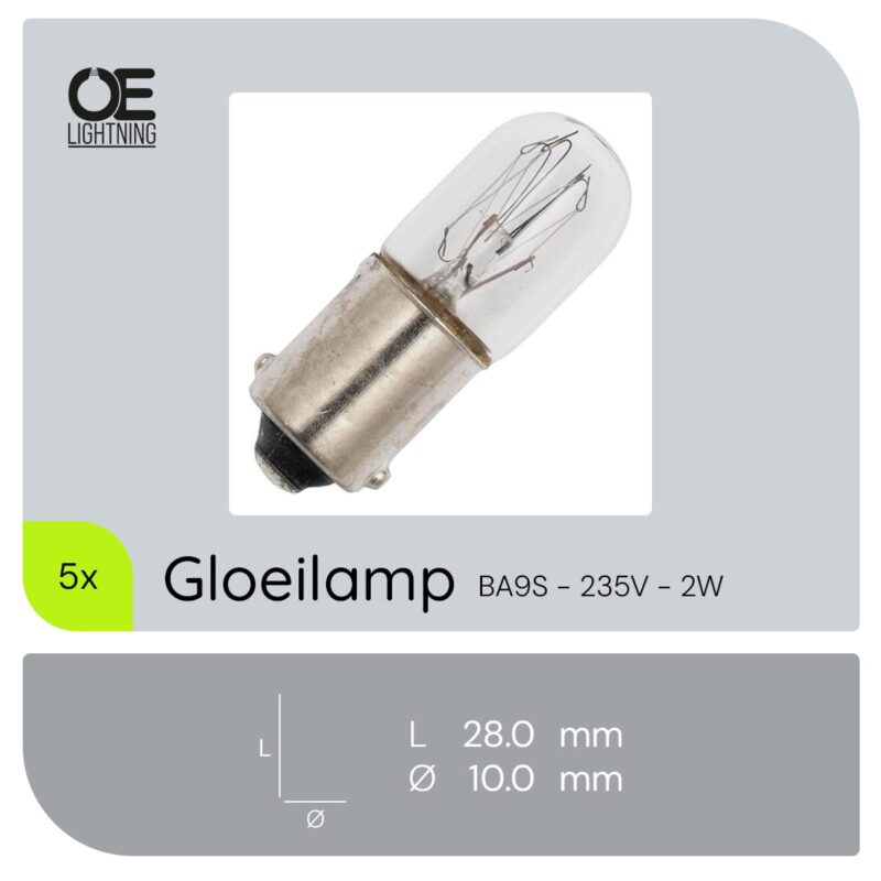 De miniatuur signaallamp Ba9s is een compacte gloeilamp die geschikt is voor diverse toepassingen zoals apparatuur, instrumentpanelen en indicatorlampjes. Met een vermogen van 2W en een spanning van 240V biedt deze lamp een betrouwbare lichtoplossing voor kleine ruimtes. De lamp heeft een diameter van 10mm en een lengte van 28mm, waardoor hij eenvoudig in kleine fittingen past.