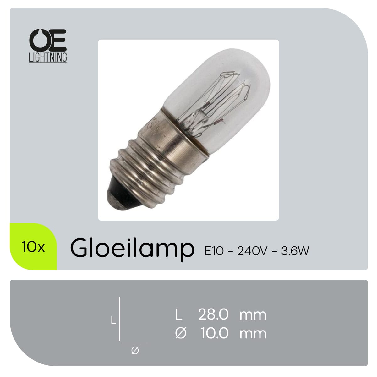 De miniatuur signaallamp E10 is een compacte en efficiënte lichtbron, ontworpen voor gebruik in diverse apparatuur en instrumentpanelen. Met een vermogen van 3.6W en een spanning van 240V, biedt deze lamp een betrouwbare verlichting voor indicatorlampjes en andere toepassingen. De lamp is dimbaar en straalt een warm wit licht van 2500K uit, wat zorgt voor een aangename en zichtbare verlichting.