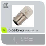 De signaallamp Ba15d 130V 5W is een compacte gloeilamp die geschikt is voor diverse toepassingen zoals apparaten, signaalverlichting en industriële toepassingen. Met een diameter van 16 mm en een lengte van 35 mm biedt deze lamp een efficiënte lichtoplossing in een warm witte kleurtemperatuur van 2500K. De lamp is dimbaar, waardoor de lichtintensiteit naar wens kan worden aangepast.