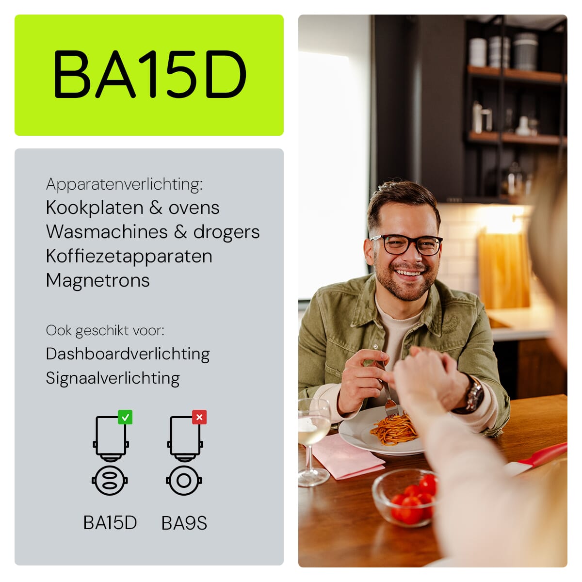De Signaallamp Ba15d 230V 15W is een veelzijdige gloeilamp die geschikt is voor diverse toepassingen, waaronder industrieel gebruik, signaalverlichting en huishoudelijke apparaten. Met een diameter van 16 mm en een lengte van 54 mm biedt deze lamp een compacte oplossing voor situaties waar betrouwbare verlichting vereist is. De lamp straalt een warm wit licht uit met een kleurtemperatuur van 2500K, wat zorgt voor een aangename en sfeervolle verlichting.