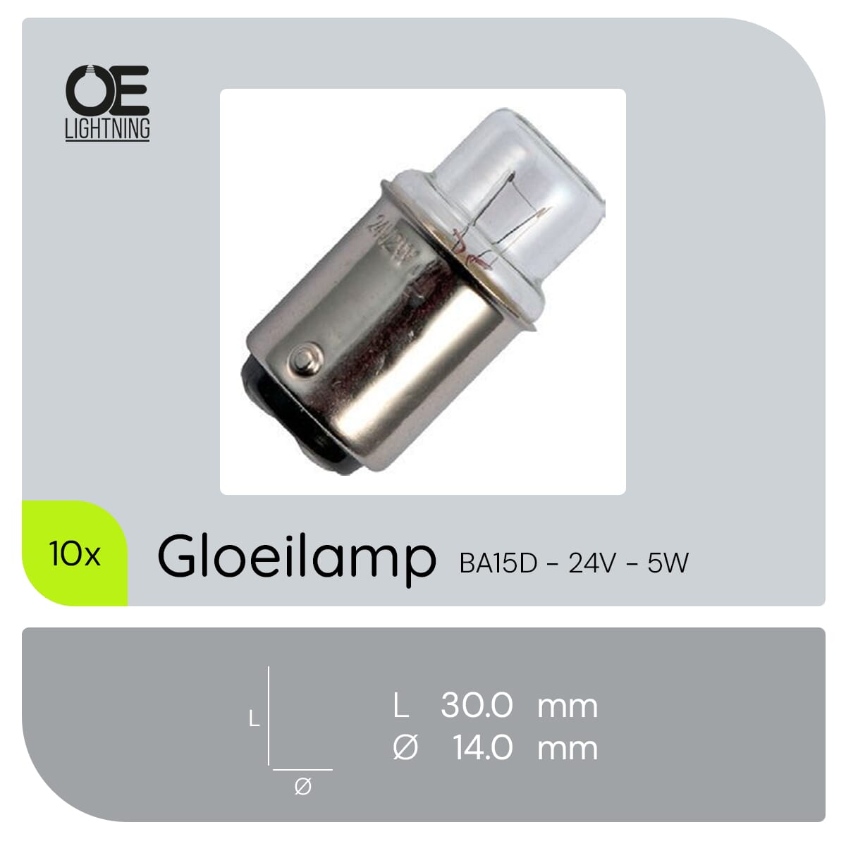 De signaallamp Ba15d werkt door elektrische stroom om te zetten in licht. De lamp is eenvoudig te installeren in een geschikte fitting en kan direct worden gebruikt in systemen die 24V ondersteunen.