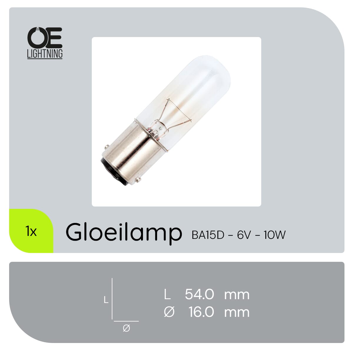 De signaallamp BA15D 6V 10W is een veelzijdige gloeilamp die geschikt is voor diverse toepassingen zoals klassieke fietslampen, retro zaklampen en modelbouw. Met een diameter van 16 mm en een lengte van 54 mm biedt deze lamp een compacte oplossing voor verlichting in kleine ruimtes. Het warm witte licht van 2500K zorgt voor een aangename en sfeervolle verlichting.