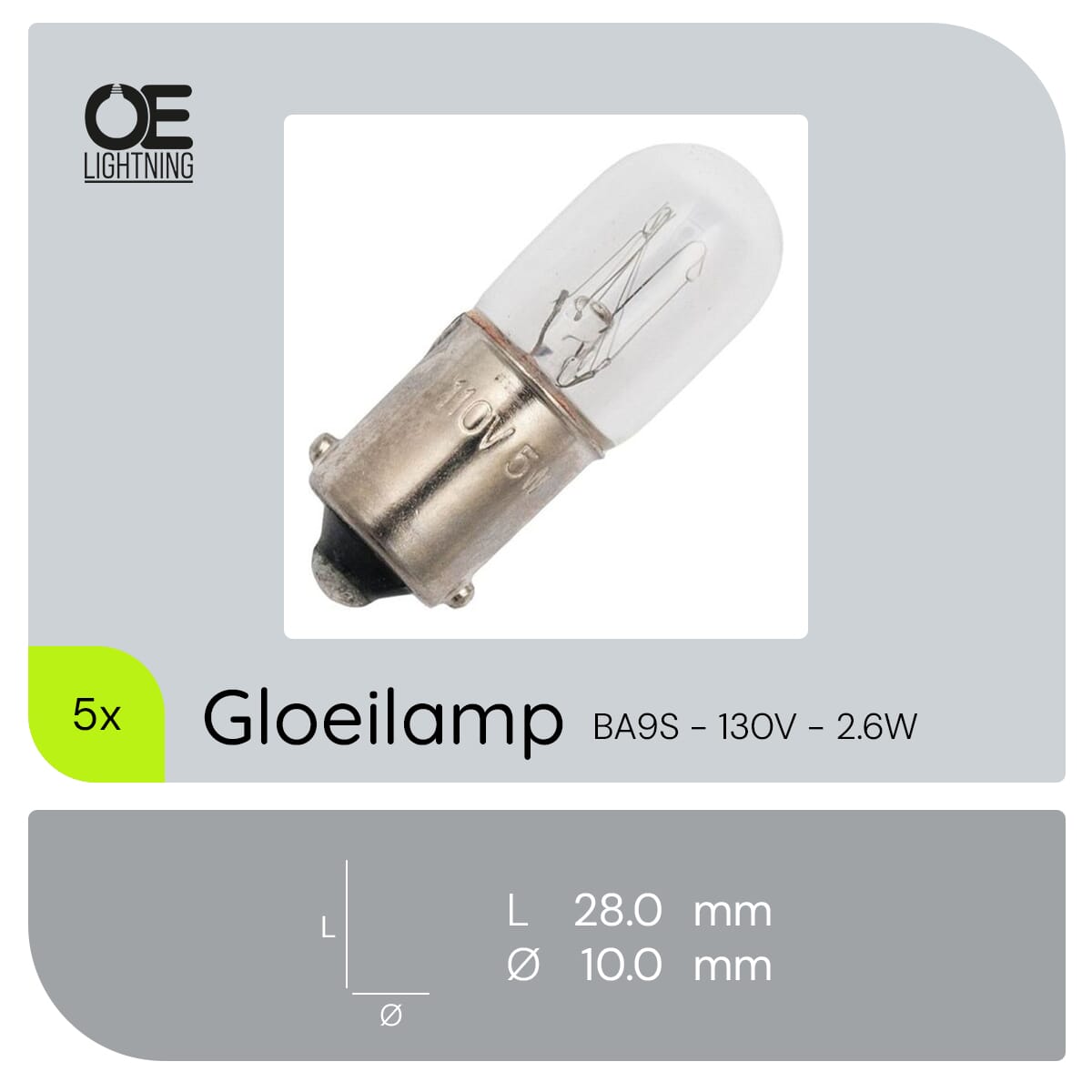 De Signaallamp Ba9s 130V 2.6W is een compacte en efficiënte lichtbron, ontworpen voor gebruik in diverse apparaten, signaalverlichting en industriële toepassingen. Deze gloeilamp biedt een warm wit licht van 2500K en is dimbaar, waardoor het geschikt is voor situaties waar variabele lichtintensiteit gewenst is. Met een diameter van 10mm en een lengte van 28mm past deze lamp in kleine ruimtes en is het een praktische keuze voor specifieke verlichtingsbehoeften.