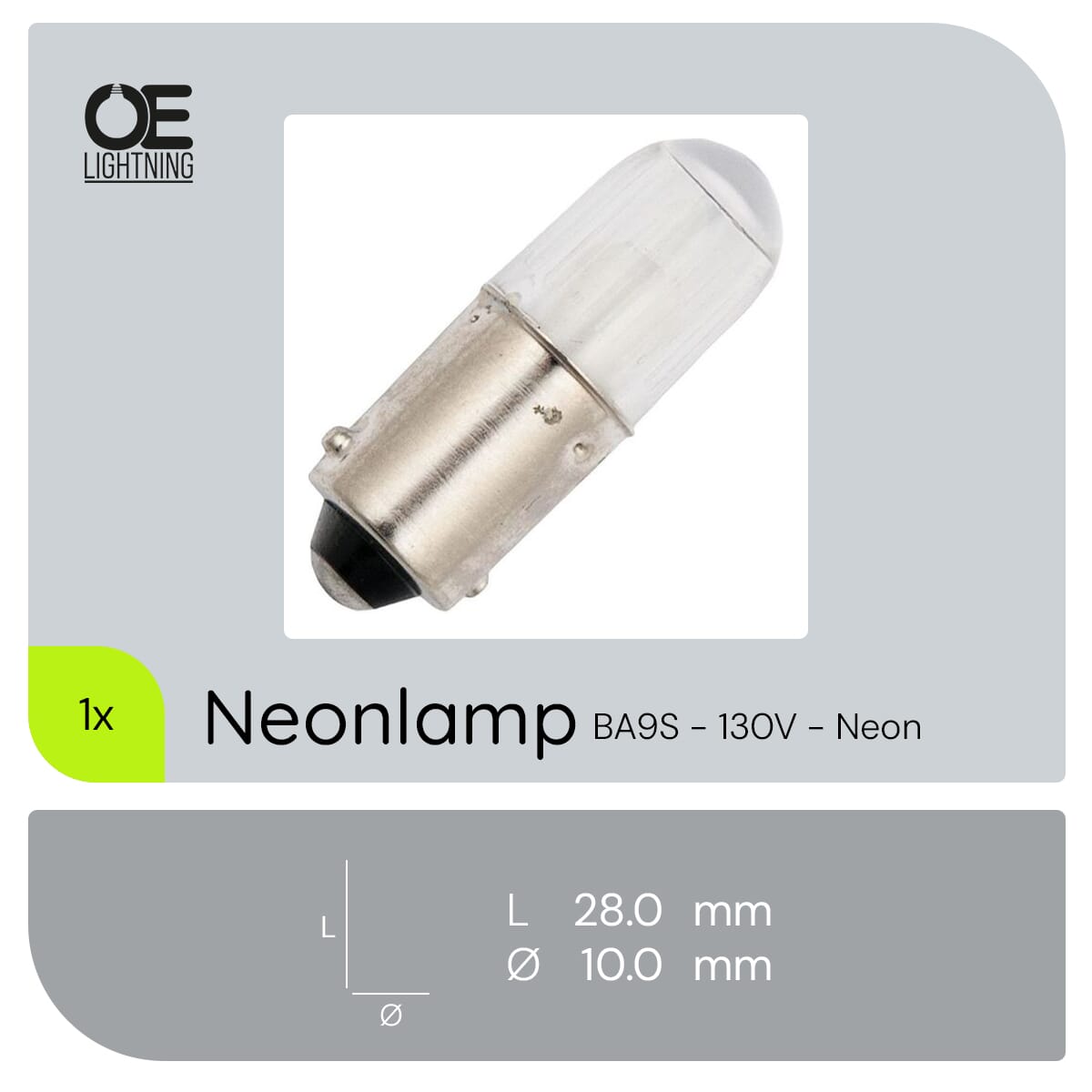 De Signaallamp Ba9s 130V is een neonlamp die speciaal is ontworpen voor gebruik in apparaten, signaalverlichting en industriële toepassingen. Met een diameter van 10 mm en een lengte van 28 mm biedt deze lamp een compacte oplossing voor diverse verlichtingsbehoeften. De lamp straalt een warm wit licht uit met een kleurtemperatuur van 2500K, wat zorgt voor een aangename en zachte verlichting.