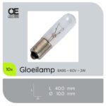 De Signaallamp Ba9s 60V 3W is een compacte en efficiënte lichtbron, ontworpen voor gebruik in diverse apparaten en industriële toepassingen. Deze gloeilamp biedt warm wit licht met een kleurtemperatuur van 2500K, wat zorgt voor een aangename en zichtbare verlichting. Met een diameter van 10mm en een lengte van 40mm is deze lamp geschikt voor signaalverlichting en andere specifieke toepassingen.