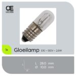 De signaallamp E10 130V 2.6W is een compacte gloeilamp die geschikt is voor diverse toepassingen, waaronder apparaten, signaalverlichting en industriële toepassingen. Met een diameter van 10 mm en een lengte van 28 mm biedt deze lamp een efficiënte lichtoplossing in een klein formaat. De lamp straalt een warm wit licht uit met een kleurtemperatuur van 2500K en is dimbaar, waardoor het geschikt is voor verschillende omgevingen en stemmingen.