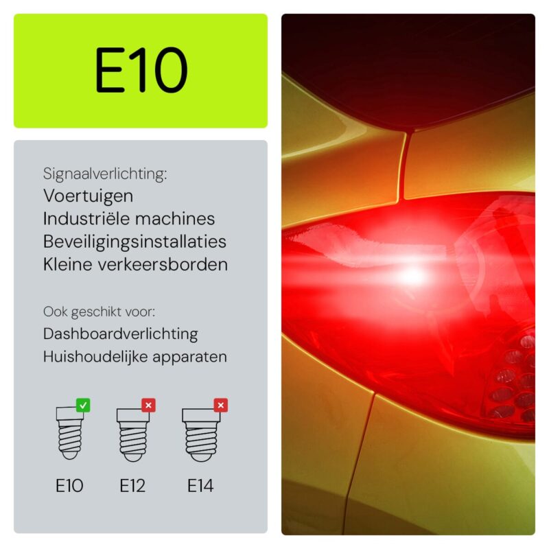 De Signaallamp E10 heeft een klein formaat met een diameter van slechts 9 mm, waardoor hij perfect is voor gebruik in beperkte ruimtes. Dit maakt de lamp geschikt voor zowel huishoudelijke als industriële toepassingen.