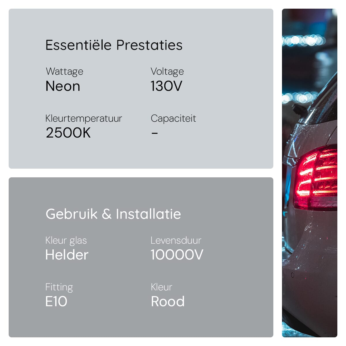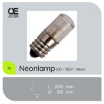 De signaallamp E10 130V is een compacte en efficiënte lichtbron, ontworpen voor gebruik in diverse apparaten en industriële toepassingen. Deze T9 neonlamp heeft een diameter van 9 mm en een lengte van 23 mm, waardoor hij geschikt is voor signaalverlichting en andere specifieke toepassingen waar ruimte beperkt is.