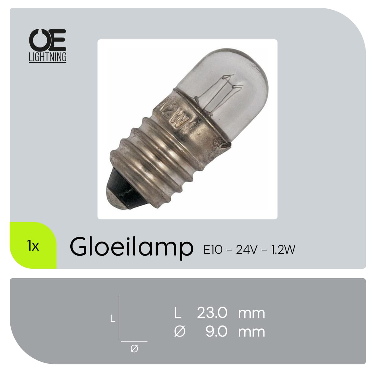 De signaallamp E10 24V 1.2W is een compacte en efficiënte gloeilamp, ontworpen voor gebruik in industriële toepassingen, vrachtwagens en boten. Met een diameter van 9 mm en een lengte van 23 mm, biedt deze lamp een betrouwbare lichtoplossing voor diverse signaal- en indicatietoepassingen. Het warm witte licht van 2500K zorgt voor een aangename verlichting die niet verblindt.