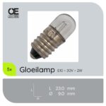 De signaallamp E10 30V 2W is een compacte gloeilamp die speciaal is ontworpen voor gebruik in industriële toepassingen, vrachtwagens en boten. Met een diameter van 9 mm en een lengte van 23 mm, biedt deze lamp een warm wit licht van 2500K, wat zorgt voor een aangename en zichtbare verlichting. Deze lamp is dimbaar, waardoor de lichtintensiteit naar wens kan worden aangepast.