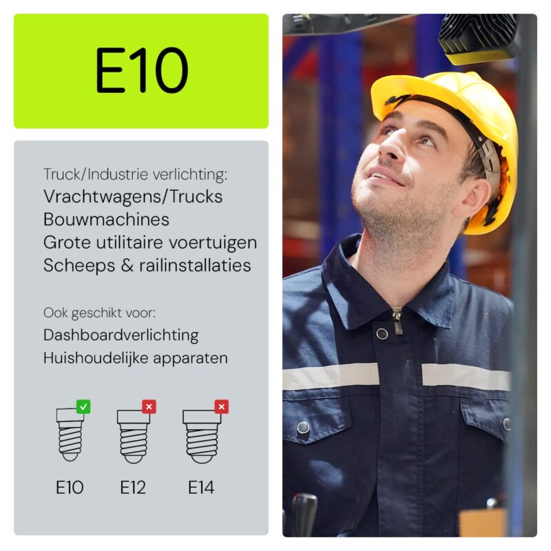 De signaallamp E10 werkt door elektrische stroom om te zetten in licht, waarbij de E10 fitting zorgt voor een eenvoudige installatie in compatibele armaturen.