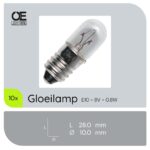 De OE Lightning Signaallamp E10 is een compacte gloeilamp ontworpen voor diverse toepassingen zoals navigatieverlichting, dashboards, trucks en maritieme toepassingen. Met een diameter van 10 mm en een lengte van 28 mm biedt deze lamp een warm wit licht van 2500K, wat zorgt voor een aangename en heldere verlichting.