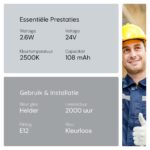 - Kleurtemperatuur: 2500K