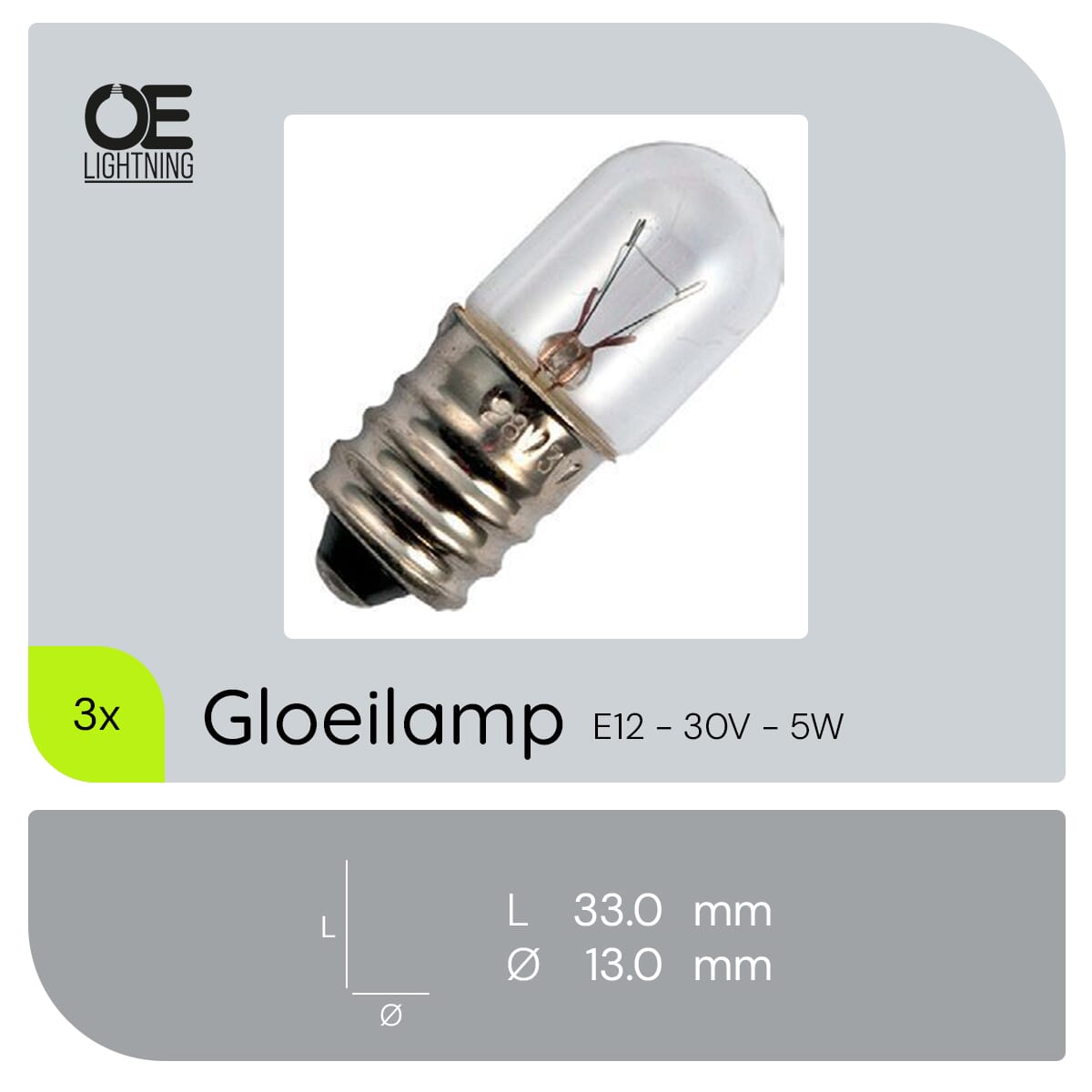 De signaallamp E12 30V 5W is een compacte en efficiënte lichtbron, ontworpen voor gebruik in industriële toepassingen, vrachtwagens en boten. Deze lamp biedt een warm wit licht van 2500K en is dimbaar, waardoor het geschikt is voor diverse omgevingen waar aanpasbare verlichting gewenst is. Met een diameter van 13 mm en een lengte van 33 mm, past deze lamp in kleine armaturen en biedt het betrouwbare prestaties.