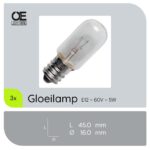 De signaallamp E12 60V 5W is een compacte en efficiënte lichtbron, ontworpen voor gebruik in diverse apparaten en industriële toepassingen. Met een diameter van 16 mm en een lengte van 45 mm, biedt deze lamp een warm wit licht van 2500K, ideaal voor signaalverlichting en andere specifieke toepassingen.