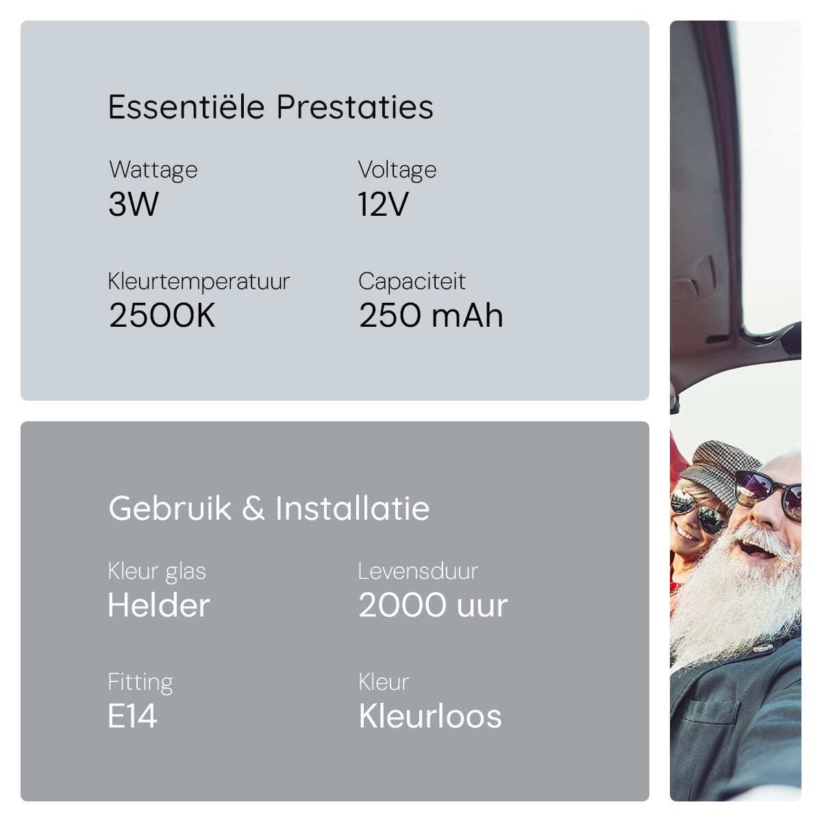 - Kleurtemperatuur: 2500K