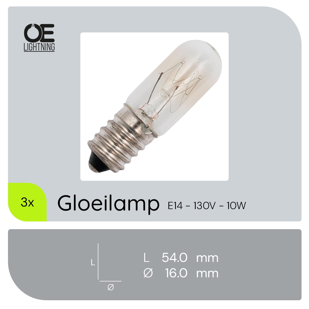 De signaallamp E14 130V 10W is een compacte en efficiënte lichtbron, ontworpen voor gebruik in apparaten, signaalverlichting en industriële toepassingen. Met een diameter van 16 mm en een lengte van 54 mm, biedt deze lamp een warm wit licht van 2500K, wat zorgt voor een aangename en functionele verlichting.