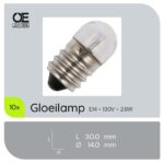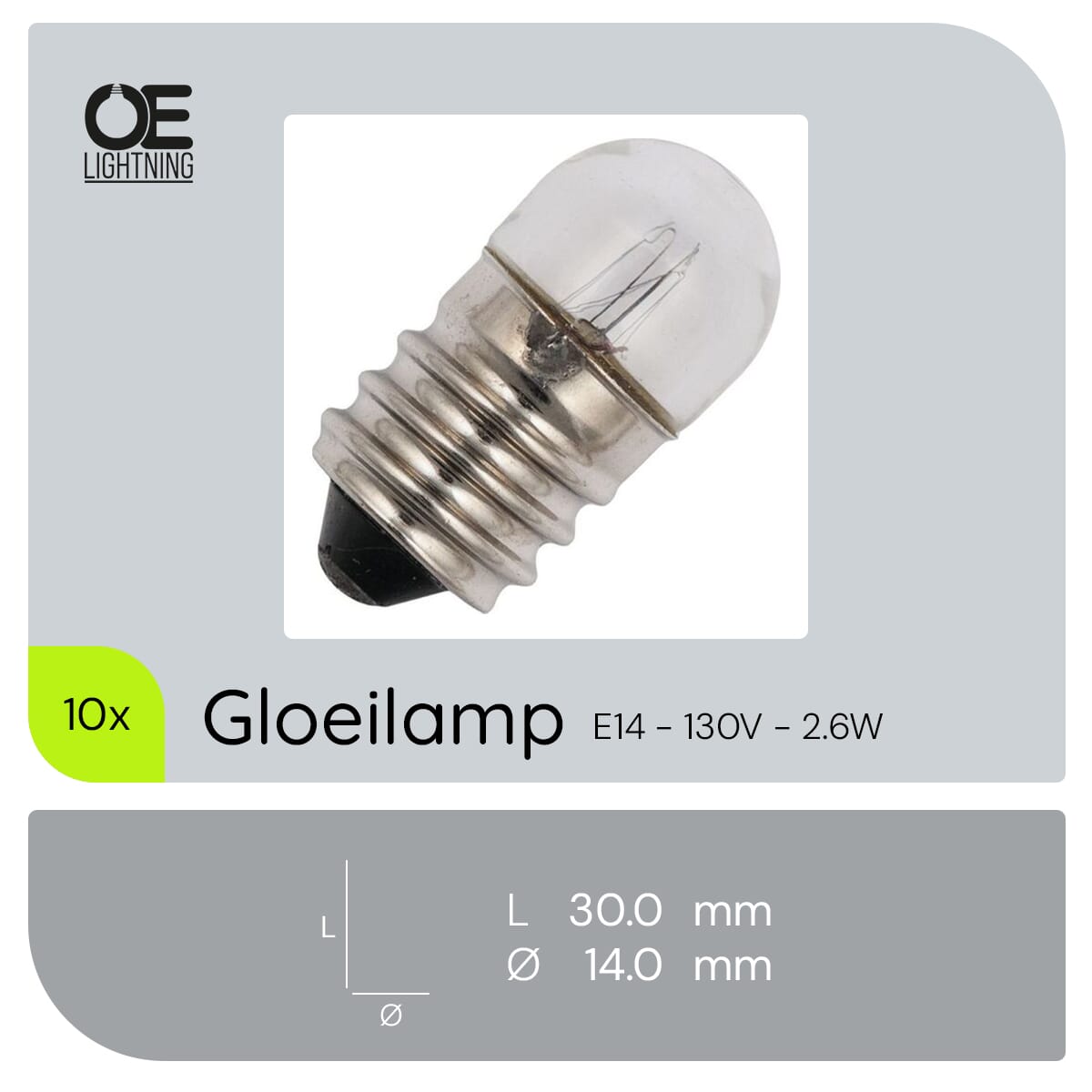 De Signaallamp E14 130V 2.6W is een compacte en efficiënte gloeilamp, ontworpen voor gebruik in diverse apparaten en industriële toepassingen. Met een diameter van 14 mm en een lengte van 30 mm, biedt deze lamp een warm wit licht van 2500K, ideaal voor signaalverlichting en andere specifieke toepassingen.