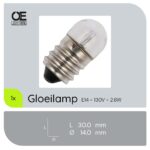 De signaallamp E14 130V 2.6W is een compacte gloeilamp ontworpen voor diverse toepassingen, waaronder apparaten, signaalverlichting en industriële toepassingen. Met een diameter van 14 mm en een lengte van 30 mm is deze lamp geschikt voor gebruik in kleine armaturen en krappe ruimtes. De lamp straalt een warm wit licht van 2500K uit, wat zorgt voor een aangename en sfeervolle verlichting.