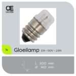 De signaallamp E14 130V 2.6W is een compacte gloeilamp ontworpen voor diverse toepassingen, waaronder apparaten, signaalverlichting en industriële toepassingen. Met een diameter van 14 mm en een lengte van 30 mm is deze lamp geschikt voor gebruik in kleine armaturen en krappe ruimtes. De lamp straalt een warm wit licht van 2500K uit, wat zorgt voor een aangename en sfeervolle verlichting.