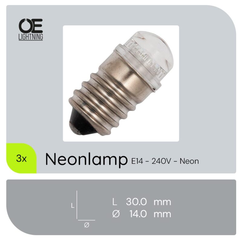 Signaallamp E14 240V – 3 stuks – T16 Neonlamp Ø16mm