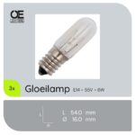 De signaallamp E14 55V 6W is een compacte en efficiënte lichtbron, ontworpen voor gebruik in apparaten, signaalverlichting en industriële toepassingen. Met een diameter van 16 mm en een lengte van 54 mm, biedt deze lamp een warm wit licht van 2500K, wat zorgt voor een aangename en functionele verlichting in diverse omgevingen.