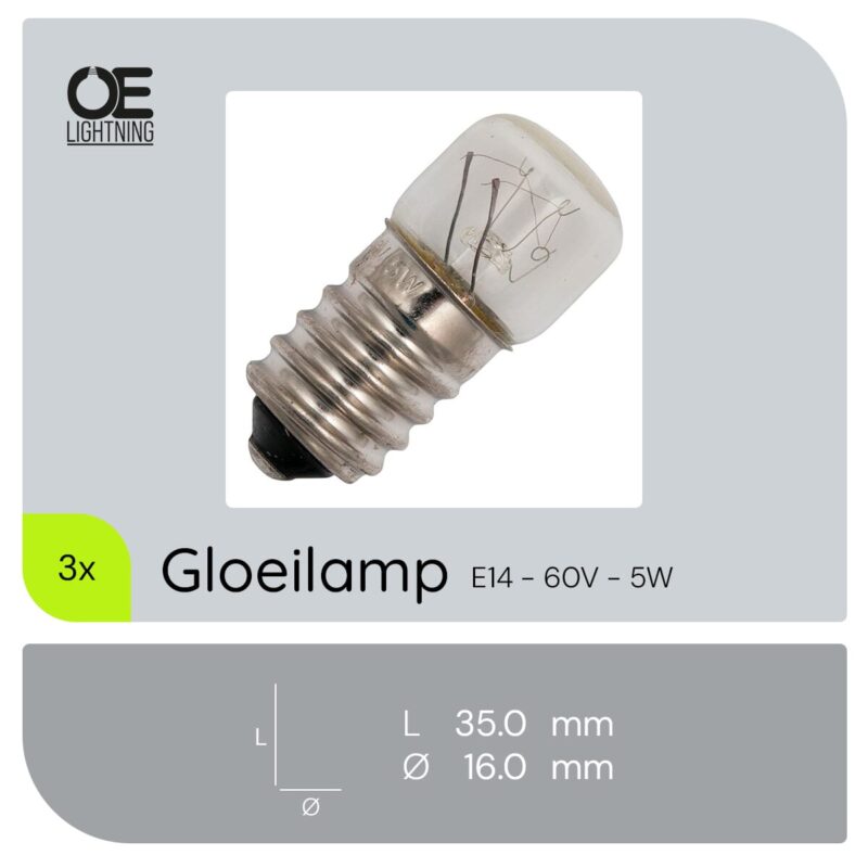 De signaallamp E14 60V 5W is een compacte en efficiënte lichtbron, ontworpen voor gebruik in apparaten, signaalverlichting en industriële toepassingen. Met een diameter van 16 mm en een lengte van 35 mm past deze lamp in kleine ruimtes waar betrouwbare verlichting vereist is. De lamp straalt een warm wit licht van 2500K uit, wat zorgt voor een aangename en zichtbare verlichting.