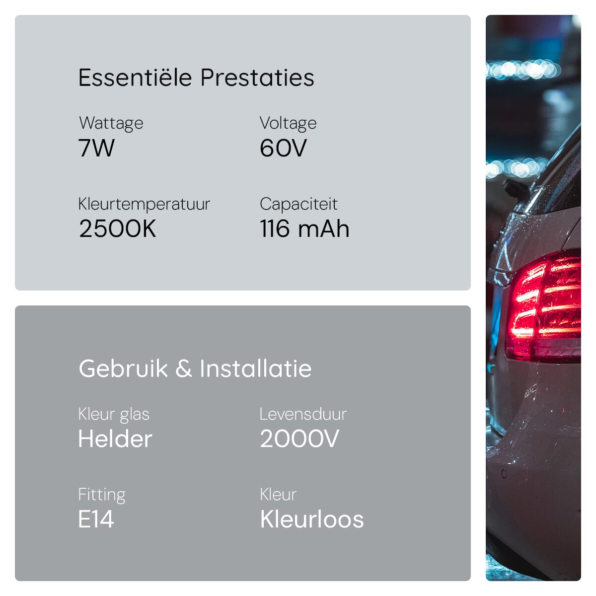 - Kleurtemperatuur: 2500K