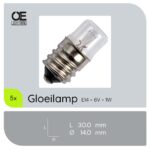 De Signaallamp E14 6V 1W is een compacte gloeilamp die ideaal is voor gebruik in klassieke fietslampen, retro zaklampen en modelbouwprojecten. Met een diameter van 14 mm en een lengte van 30 mm past deze lamp perfect in kleine armaturen. De lamp straalt een warm wit licht uit van 2500K, wat zorgt voor een aangename en sfeervolle verlichting.