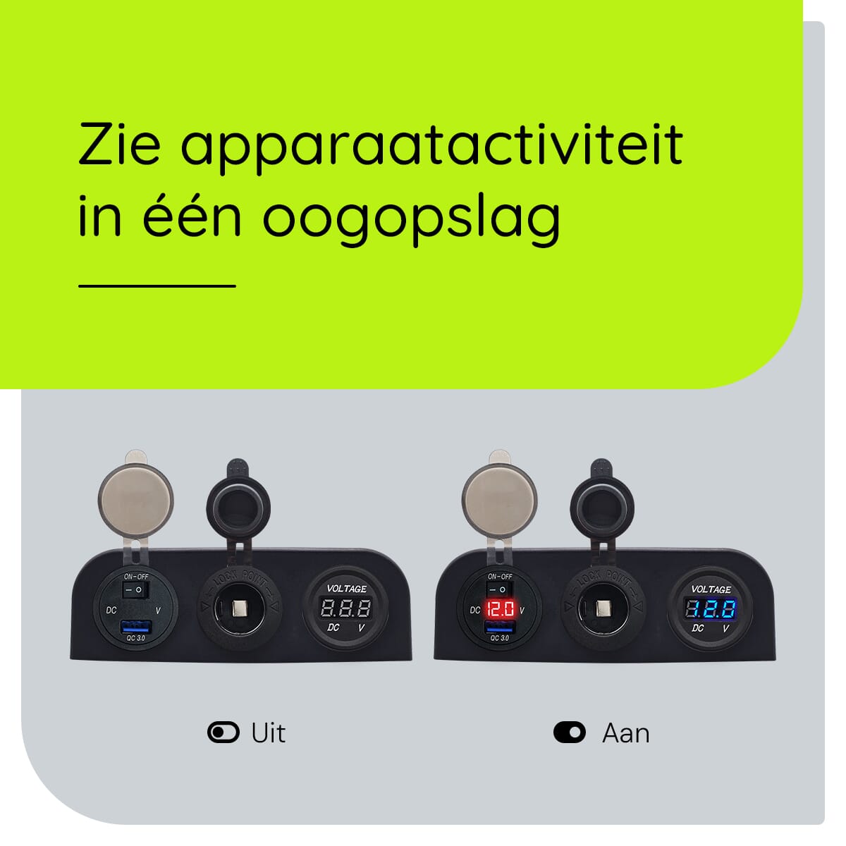 ProRide 12V USB Stopcontact – Slim Laden met Geïntegreerde Voltmeter