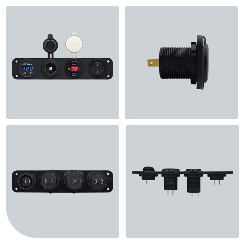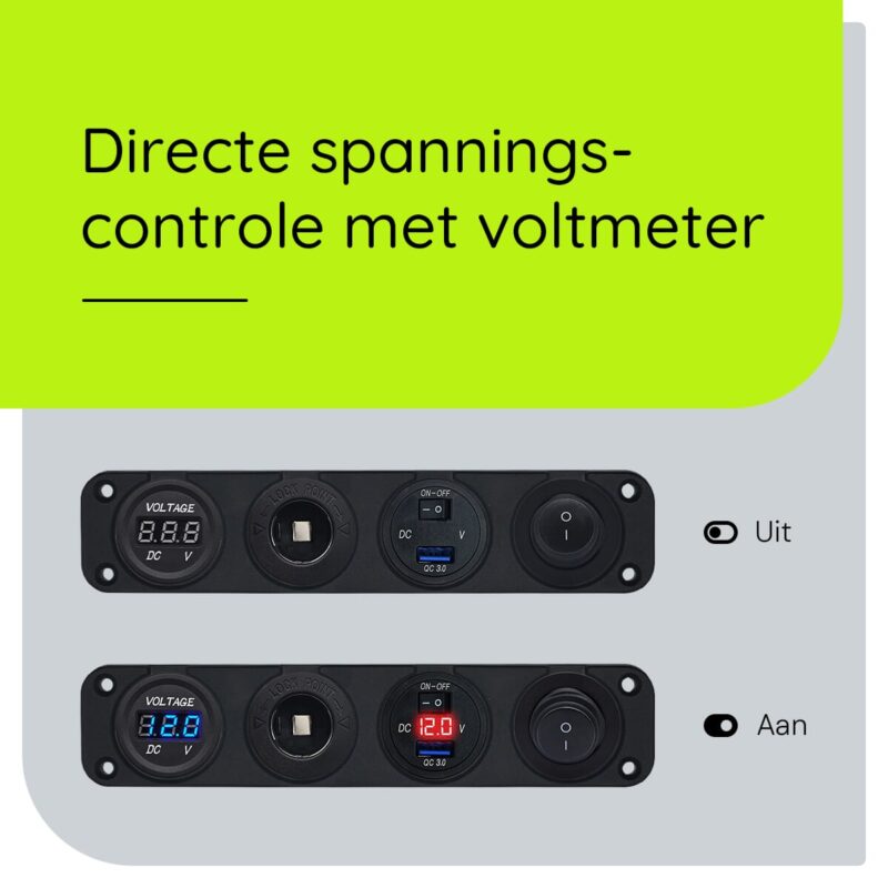 - Extra’s: Voltmeter, schakelaar, 12V/24V sigaretten stopcontact