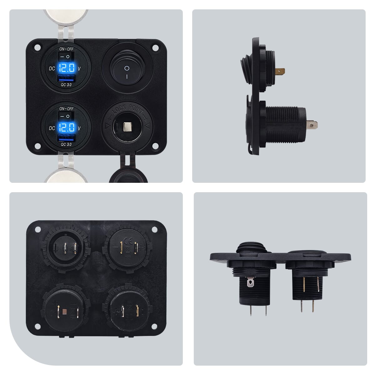 - Meerdere aansluitingen: Laad tot vier apparaten tegelijk op met de dubbele USB-poorten en het 12V sigaretten stopcontact.